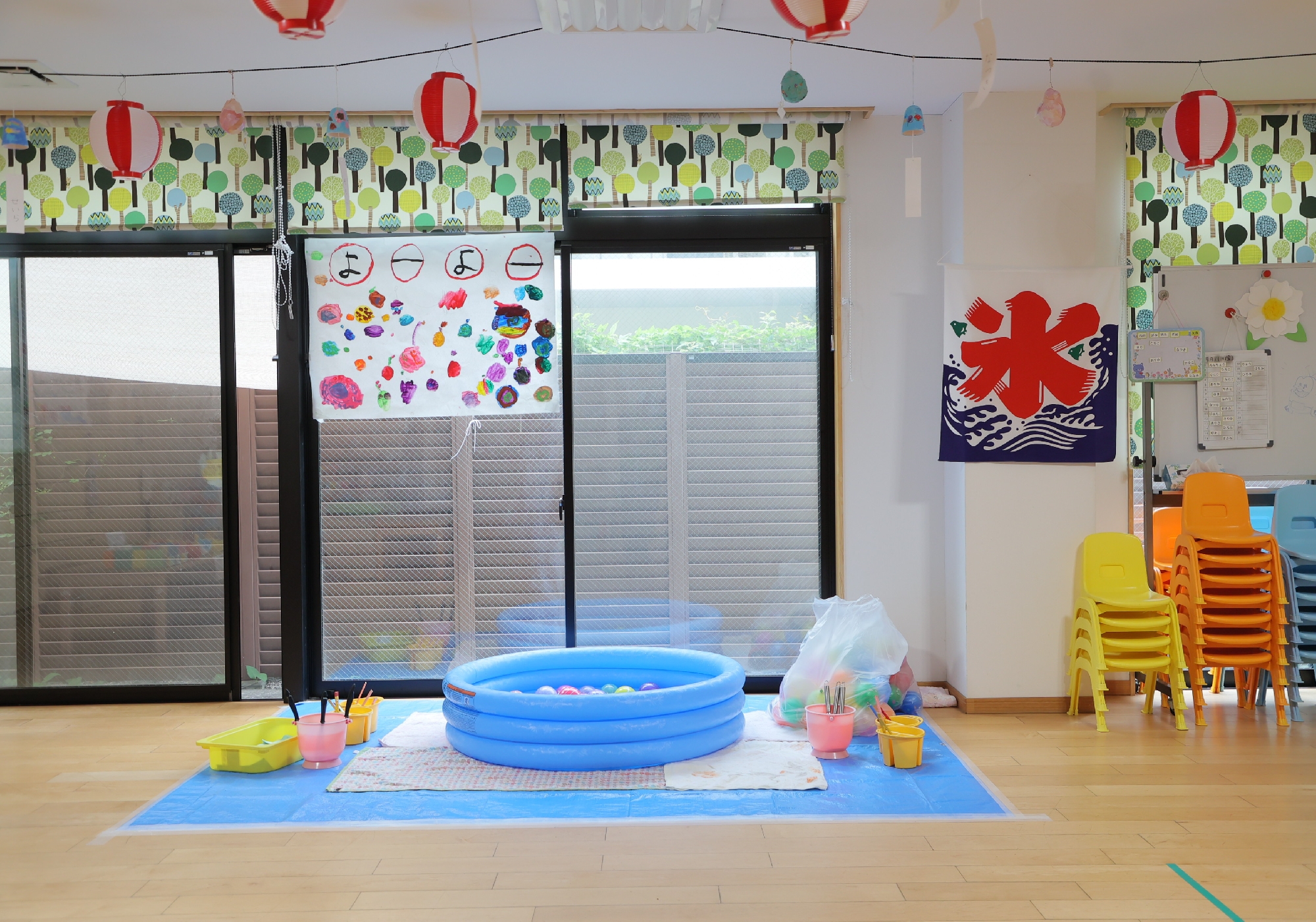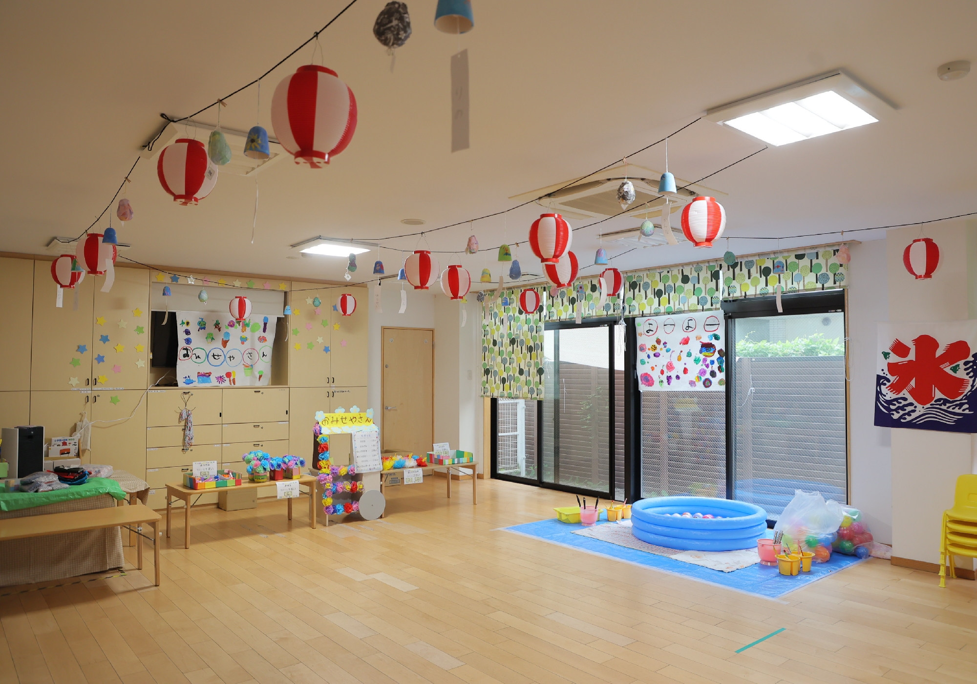 森のホールをお祭り会場にしています!